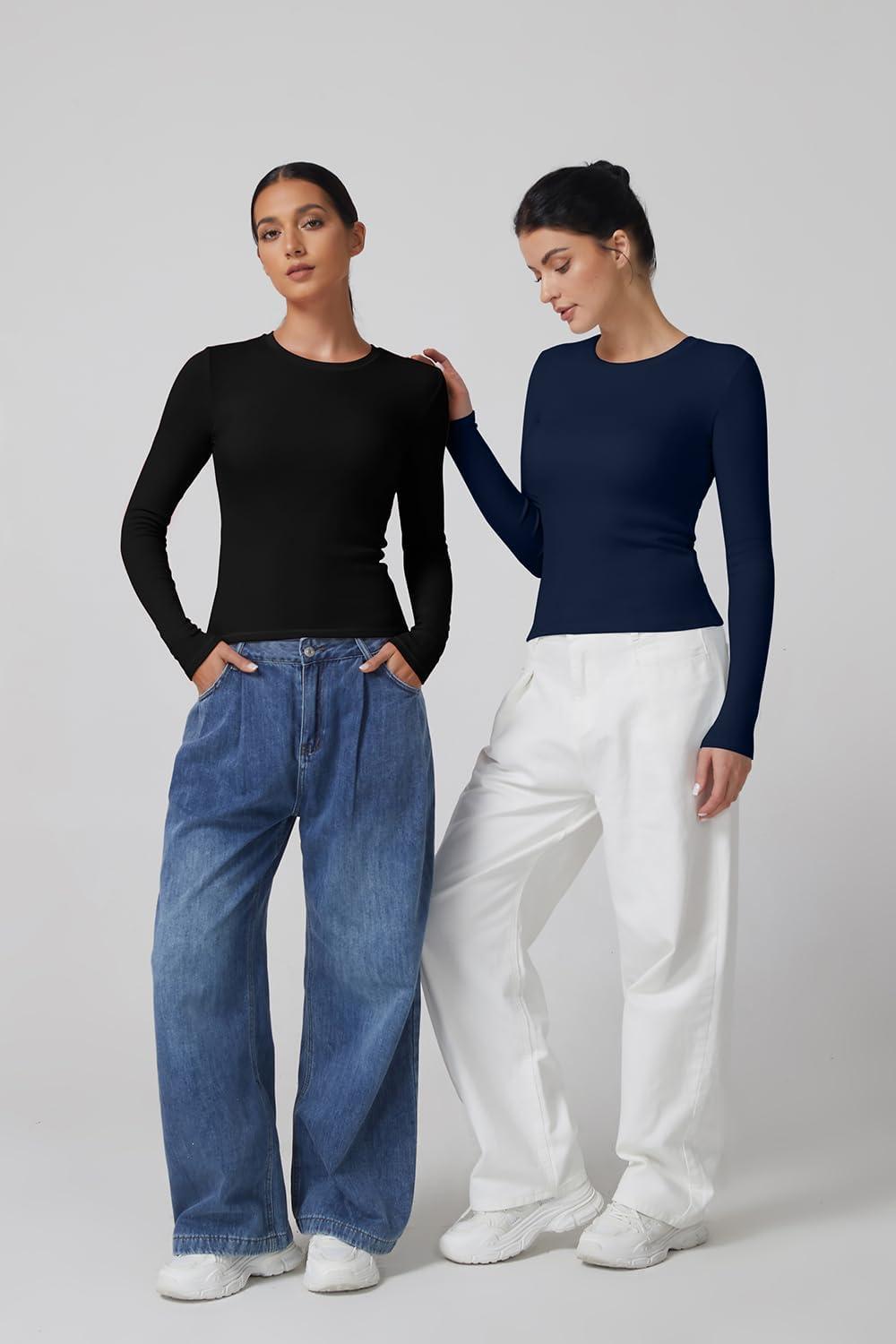 Get your hands on our newest QINSEN Long Sleeve Shirts for Women Crewneck Rib Knit Slim Fit Going Out Tops Casual Basic Tee(Black) and enjoy a limited-time discount offer.