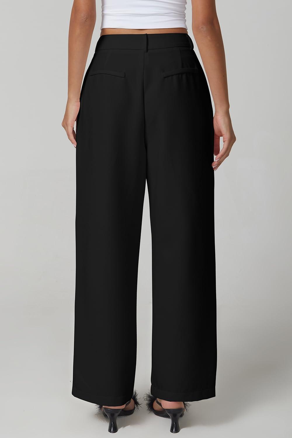 QINSEN Wide Leg Dress Pants for Women High Waisted Wrinkle Free Work Pants with Pockets Casual Slack(Black)