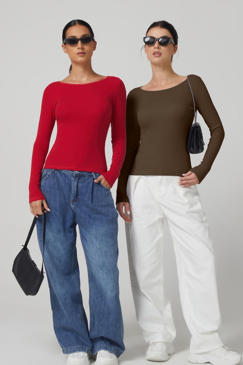 Our clearance section features the best deals on QINSEN Women’s Long Sleeve T Shirts Crewneck Tight Fitted Rib Knit Y2k Casual Tee Tops(Red) and accessories. Check it out now!